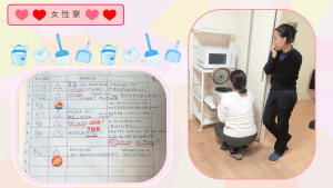 次に女性寮を訪問しました🙋スタッフが確認をしているそばで実習生たちが不安そうに見ていました。普段の寮掃除チェック時に、スタッフが表に掃除の評価を◯△✕で記入するのですが、この寮ではこれまで△ばかりでした😔しかし、この最後の大掃除ではめでたく「◯」となり、ご褒美にシールを貼ってもらえました。実習生たちからは拍手が起こりとても嬉しそうでした😆