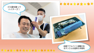 配属前に身だしなみとして散髪をする実習生が多いです。散髪代を節約するために、皆さん母国からバリカンを持参しています。実習生の中で上手な人が何人もの散髪を請け負うことが多く、口コミで我も我もと希望者がやってきます。実習生たちは散髪をとおして他のクラスや他の国の実習生とも交流を深めています。配属前の実習生は、新しい生活が楽しみである反面、不安と緊張でいっぱいでもあります。実習生たちは髪を切ることで気を引き締めているのだと思います。身だしなみについては、爪の汚れや体臭なども日々の生活で指導しています。