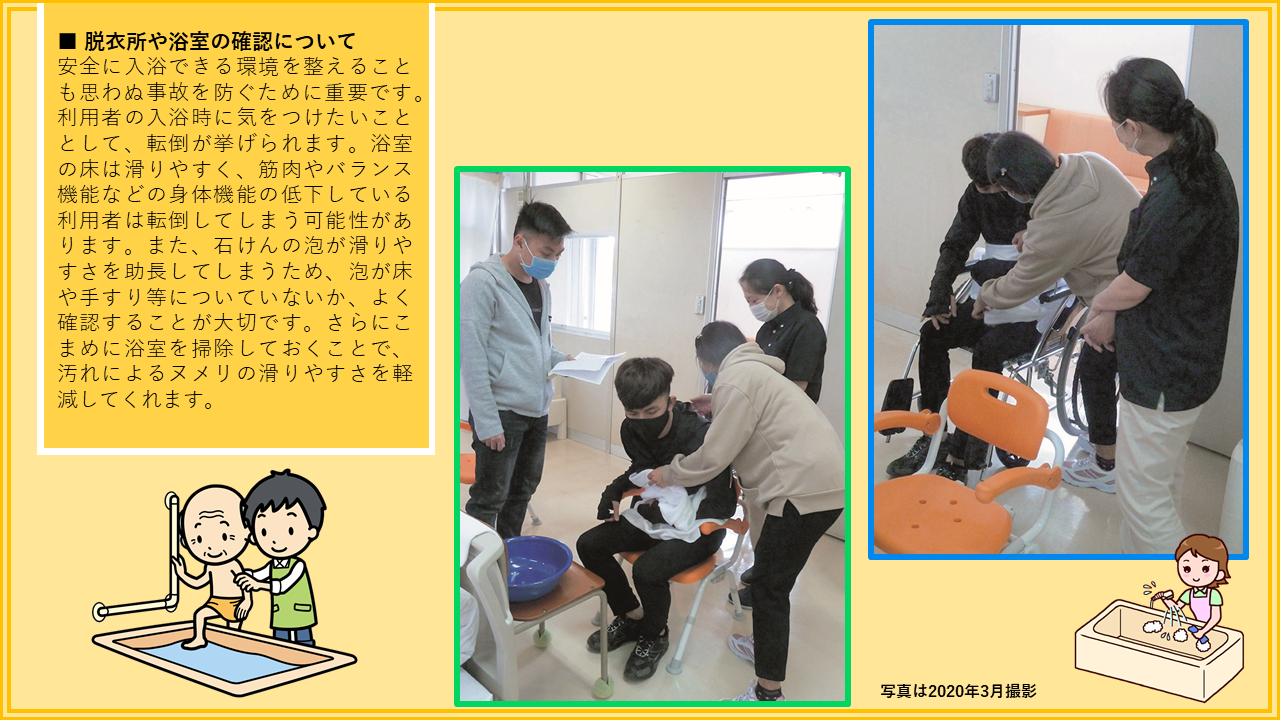 介護職の導入講習 ≈入浴編・脱衣所や浴室の確認、浴槽内に入る…