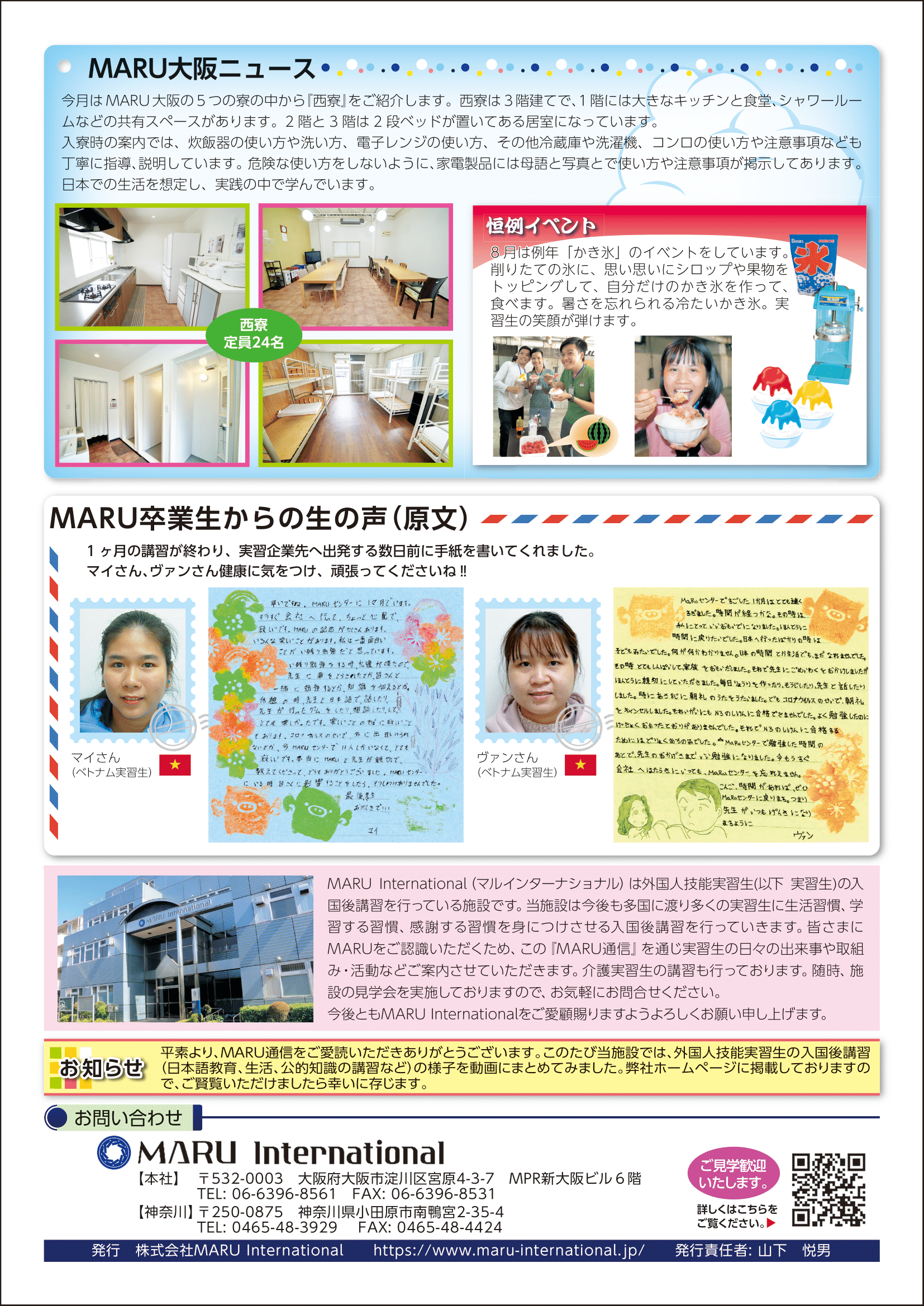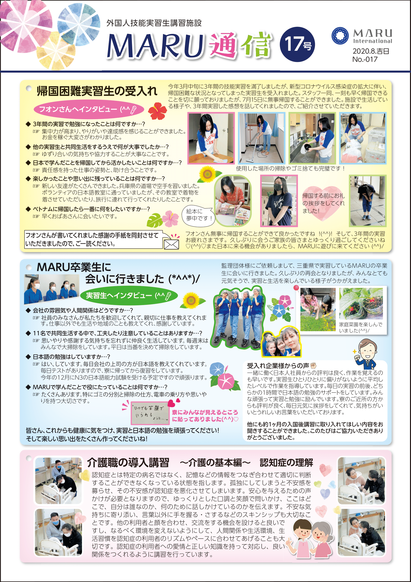 外国人技能実習生の入国後講習の近況を記した『MARU通信17号(8月号)』を発行いたしました。