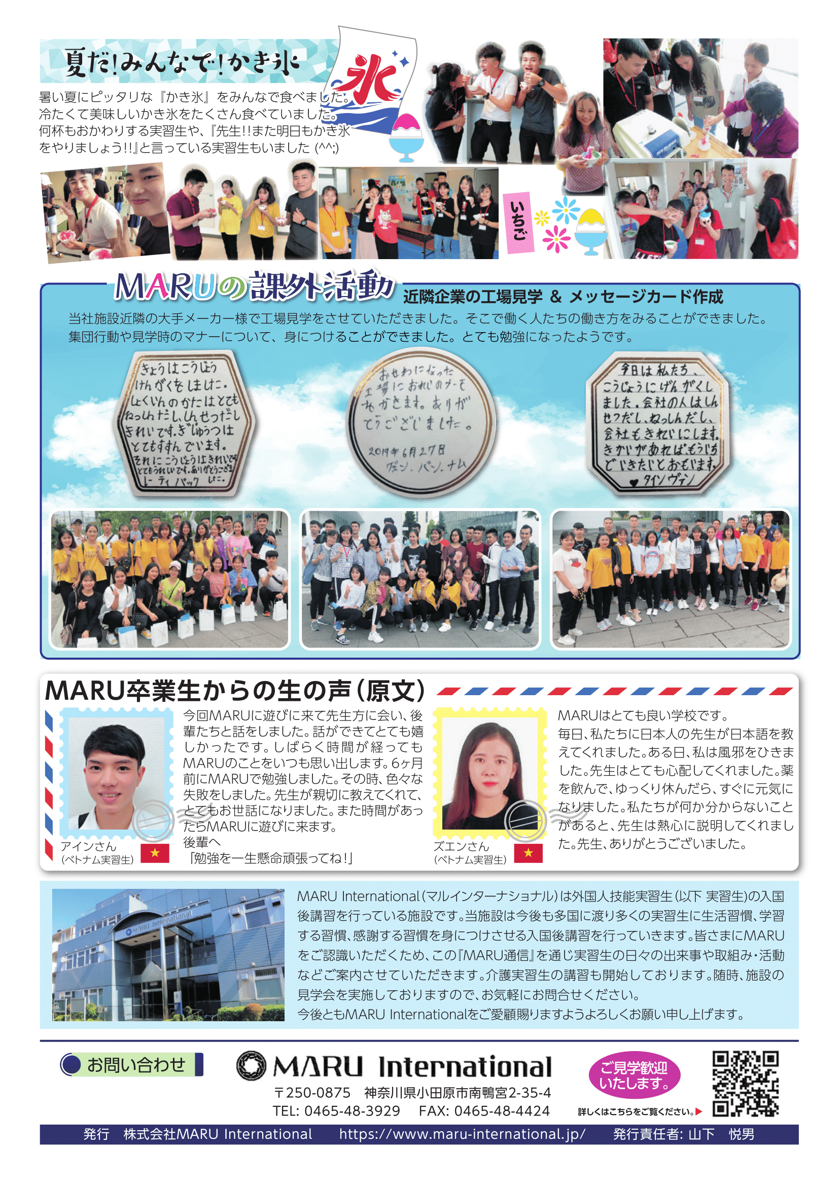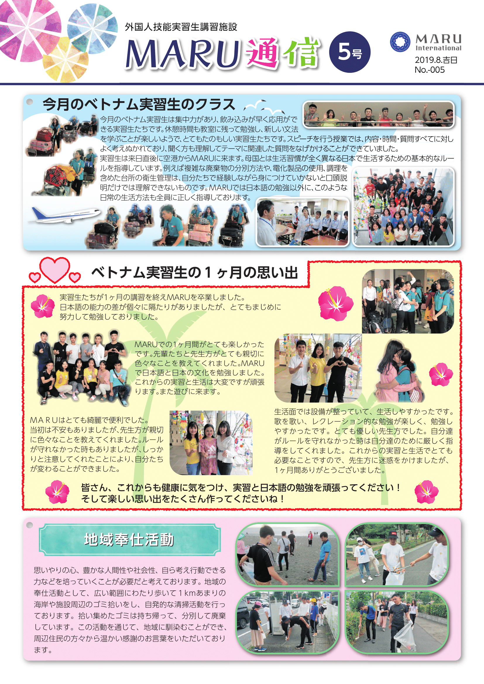 外国人技能実習生の入国後講習の近況を記した『MARU通信5号(8月号)』を発行いたしました。